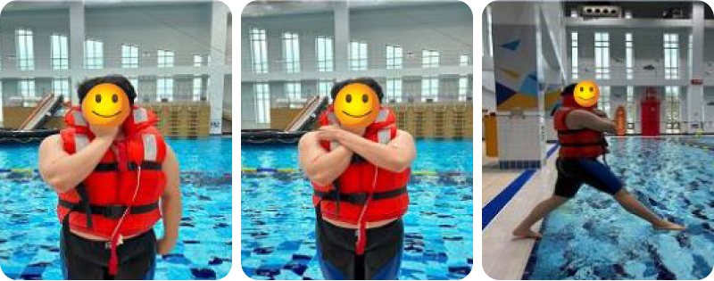 바다 조난 시 수면에서 최소한의 체력으로 규칙적인 호흡을 하며 최대한 오래 머물기 위해 물 적응, 호흡법, 구명조끼 착용법 등을 배우게 됩니다.